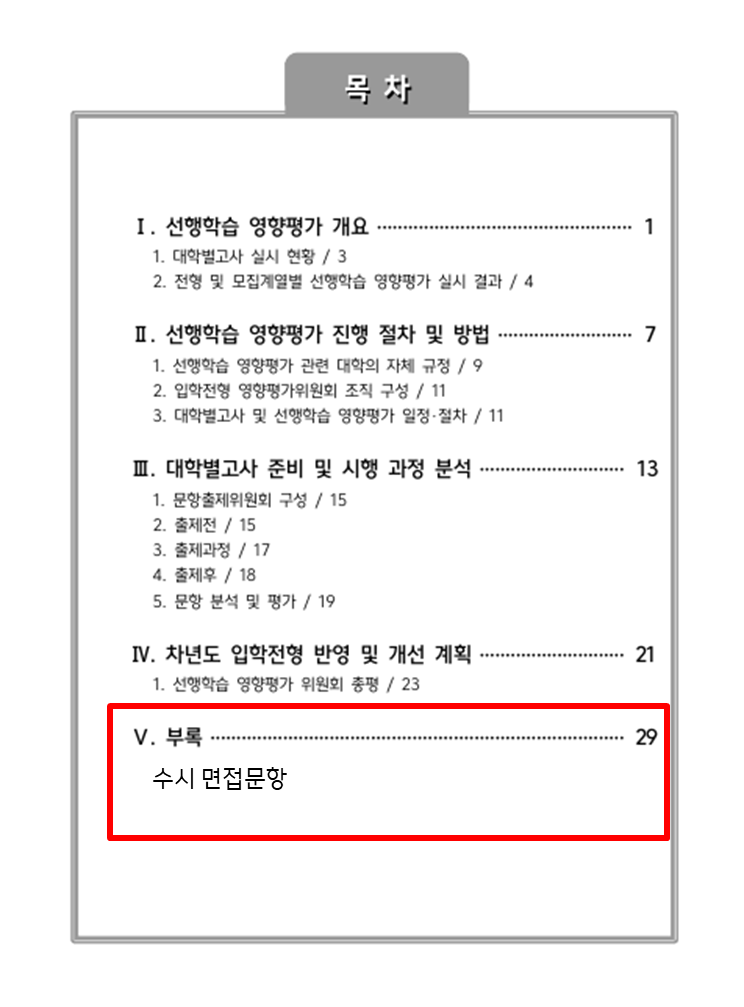 ※ 수시 면접 기출문제는 29p부터 전형별로 확인 가능합니다.