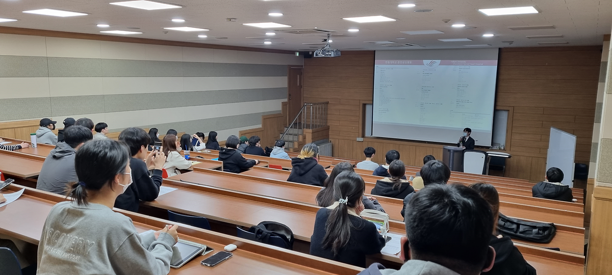 박성균 동문은 대학병원에서의 취업준비 과정을 바탕으로 사기업에 취직을 준비하는 모든 학생이 적용할 수 있는 다양한 전략구사 방법을 설명하였습니다. 또한 한림대학교 춘천성심병원 총무팀 직원들이 함께 동행하여 학생들의 질문을 직접 받아주고 설명해주는 시간도 가졌습니다.