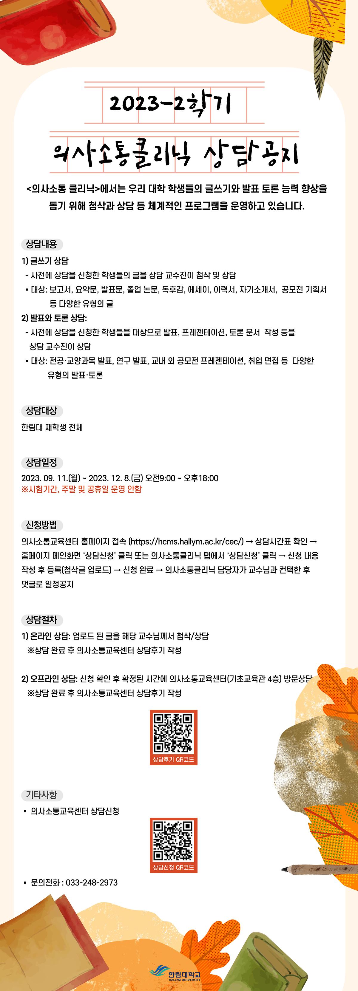 2023-2학기 의사소통클리닉 상담 신청 안내