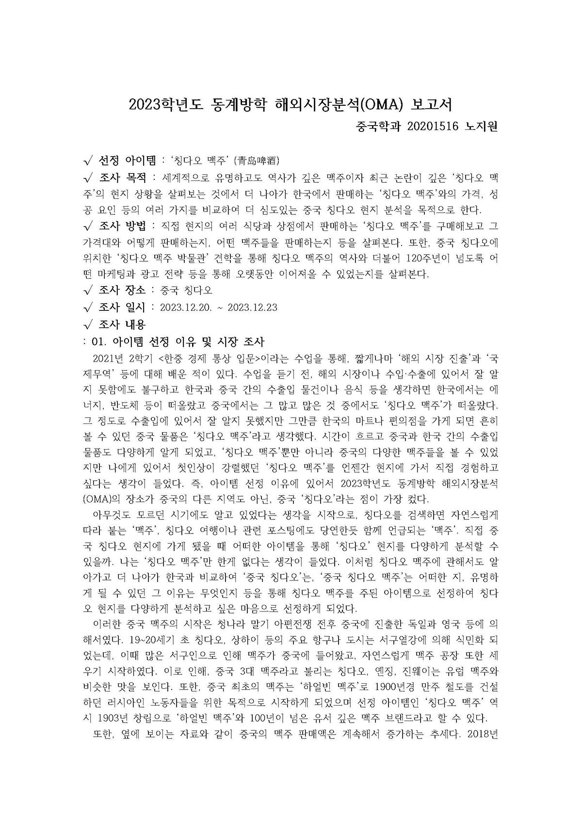 2023 한중비즈니스전공 칭다오 해외시장분석-노지원