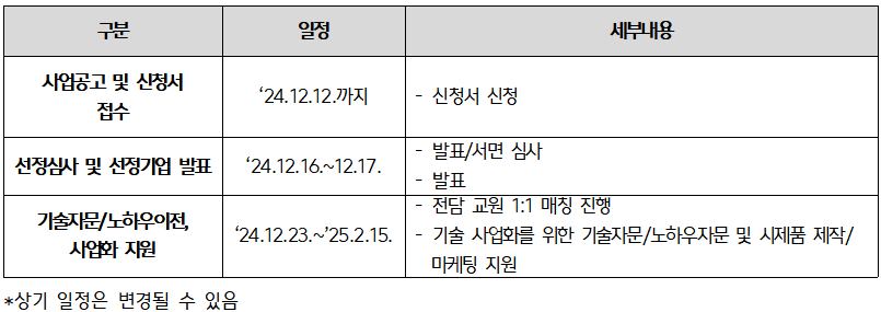 ○ 사업기간: 2024. 11. ~ 2025. 1.