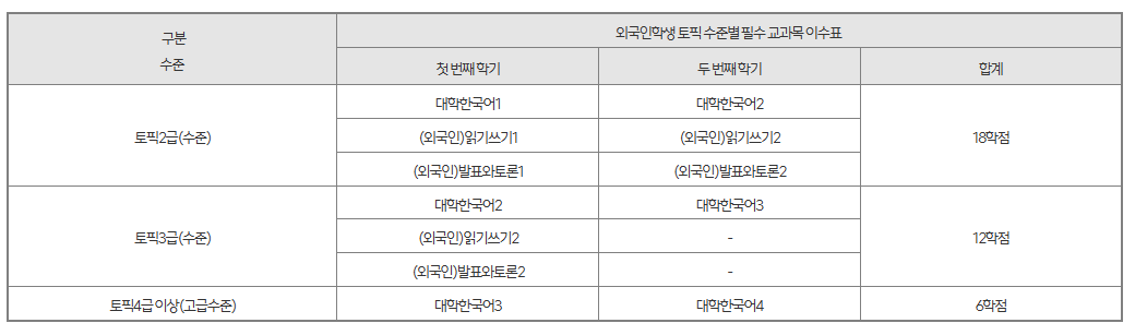 1) 글로벌소통: 토픽 수준에 따라 지정교과목