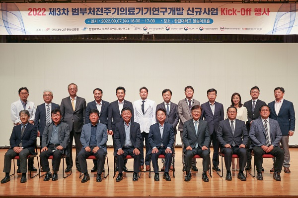 한림대춘천성심병원은 과학기술정보통신부, 산업통상자원부, 보건복지부, 식품의약품안전처 등 4개 부처가 공동으로 추진하는 범부처전주기의료기기 연구개발사업의 연구과제를 수주, 지난 7일 ‘범부처전주기의료기기연구개발 신규사업’ 킥오프 행사를 개최했다고 전했다.