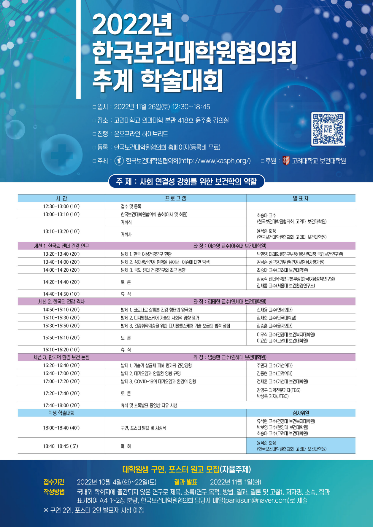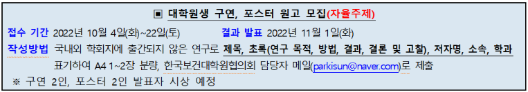 [보건학과] 2022년 한국보건대학원협의회 추계 학술대회 개최 안내