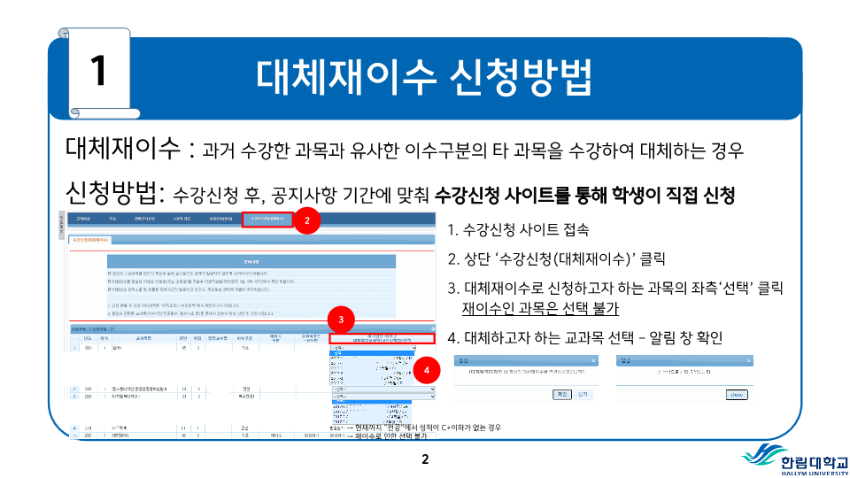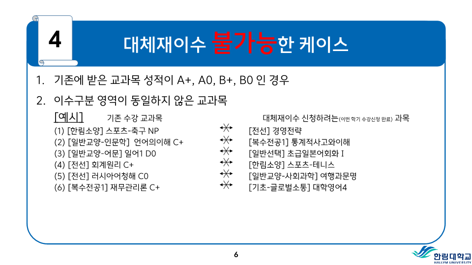 fnctId=bbs,fnctNo=487 RSS 2.0 게시물 검색 제목 작성자 검색어 입력창 게시글 리스트 등급기준 등 성적평가 방식 안내 성적<시험>시험은 정기시험, 비정기시험, 추가시험, 재시험 등으로 구분한다.1) 정기시험 : 중간시험과 학기말시험으로 나누며 중간시험은 학기 당 수업일수 2분의 1이 되는 주에 실시하고, 학기말시험은 학기의 최종 주에 실시한다.2) 비정기시험 : 과제학습, 세미나 등 계속적인 학습활동을 평가하는 시험으로 담당교수의 책임 하에 실시한다.3) 추가시험 : 질병 또는 부득이한 사정으로 정기시험에 응시할 수 없는 학생은 사유와 증빙서류를 첨부하여 추가시험신청서를 제출하여 허가를 받아 정기시험 종료 후 2주일 이내에 추가시험에 응시할 수 있으며 이 경우 성적은 B+를 초과할 수 없다.4) 재시험 : 의과대학, 간호대학에 한하여 실시하며 의예과, 의학과 및 간호학과의 교과목 중 학기말 성적이 40-59점일 때 1회에 한하여 학기말시험 종료 후 2주일 이내에 재시험을 허가할 수 있으며, 성적은 C+를 초과 할 수 없다.시험 부정행위자의 처리1) 시험 중 부정행위가 적발되면 감독교수는 그 행위내용을 시험지 상단에 기록하고 날인한 후 즉시 총장에게 보고한다.2) 시험 부정행위자에 대하여는 다음의 내용에 따라 제적 또는 유기정학 처분한다.가) 제 적- 시험에 대리로 응시하거나 대리응시를 부탁한 경우- 시험지에 다른 사람의 이름을 쓰거나 쓰게 한 경우- 부정행위자로 적발되어 징계처분을 받은 사실이 있는 학생이 거듭 부정행위를 한 경우 나) 유기정학- 시험 중 책, 노트, 메모 등 허락되지 않은 것을 본 경우- 다른 학생의 답안지를 보거나 보여준 경우와 그 밖의 부정행위로 인정되는 행위를 한 경우 <성적>성적평가1) 성적평가는 각 교과목의 시험성적, 과제평가, 출석상황 및 학습태도 등을 종합하여 평가하되 출석 및 학습태도 10-20%, 정기시험 50-70%, 비정기시험 및 과제 20-30%로 함을 원칙으로 한다.2) 성적의 등급은 다음과 같이 분류하여 표기한다. 성적 등급 안내등급평점등급평점A+4.5D+1.5A04.0D01.0B+3.5F0.0B03.0P(Pass)없음C+2.5N(Non Pass)없음C02.0 3) 이수한 교과목의 성적이 D0급 이상 또는 P일 경우는 학점을 취득한 것으로 인정한다.4) 등급에 따른 백분위 기준점수 표 등급에 따른 백분위 기준점수 표 등급평점백분위 기준점수A+4.599A494B+3.589B384C+2.579C274D+1.569D164F0595) 전공과목의 성적평가 등급기준 전공과목의 성적평가 등급기준구분A이상B이상C~F비고이론35% 이하70% 이하잔여비율 3-3-0이론+실습40% 이하잔여비율 실습45% 이하 4-2-2예외과목50% 이하잔여비율 *예외과목: 15명 미만 과목, 영어과목, 교직과목 등*잔여비율: 담당교수 재량6) 기초․교양교과목의 성적평가 등급기준 기초․교양교과목의 성적평가 등급기준구분A이상B이상D~F비고일반과목30%60% 이하20%이하 예외과목절대평가 * 예외과목: 20명 미만 과목, 영어과목, RC과목 등* 출석 미달로 인해 F등급을 부여한 학생 및 교환학생은 등급 비율대상에서 제외7) 교과목 주당 수업시간의 3배를 초과하여 결석하였을 때 출석 미달로 F등급을 부여한다. 다만 담당 교수가 3배를 초과하지 않는 범위에서 자율적으로 정할 수 있으며, 수업계획서에 표시해야 한다. 또한, 3회의 지각은 한 번의 결석으로 본다.8) 학기 중 휴학한 학생의 휴학학기 성적은 인정하지 아니하며 그 학기의 수강신청은 취소된다.9) 각 교과목의 담당교수 및 강사는 학기말시험 종료 후 10일 이내에 담당교과목의 성적을 게시하고 통합정보시스템에 접속하여 웹으로 성적입력을 완료하여야 한다. <성적의 정정>1) 제출된 성적은 기재착오(성적의 오기 또는 누락) 등 부득이한 사유가 있는 경우에 한하여 총장의 허가를 받아 정정할 수 있다.2) 성적정정 절차가) 학생은 성적을 조회 확인하여야 하며, 성적에 이의가 있을 경우 담당교수에게 성적이의신청을 하여야 한다.나) 담당교수는 학생으로부터 이의신청을 받은 후 이를 검토하여 사유가 인정될 경우 학기말시험 종료 후 2주 이내에 사유서 및 증빙자료를 첨부한 성적정정원을 교무팀에 제출한다.다) 학생이 성적확인/정정기간에 정정신청을 하지 않은 경우에는 추후 성적에 대한 이의를 제기할 수 없다.3) 방학기간 중 수업, 해외현지수업 등 학기말시험 종료 후 10일 이내에 성적제출이 곤란한 교과목의 경우에는 성적제출 및 정정기간을 따로 정하여 시행할 수 있다. 성적평점평균의 계산1) 과목별 성적평점의 계산은 그 과목의 학점수와 성적등급의 평점을 곱하여 산출한다. 2) 성적평점평균의 계산은 학점을 사용한 가중평균법에 의하며, 소수 세째자리에서 반올림한다.3) 총 성적평점평균의 계산에는 재이수 교과목의 이전 성적은 산입하지 아니한다.4) 취득학점수가 다르고 성적평점평균이 동일한 경우에는 학점계가 많은 학생을 우선한다. 5) 성적등급이 P와 N으로 표시되는 교과목의 학점 및 성적은 성적평점평균 및 순위계산에서 제외한다.<성적경고와 유급, 우등생>1) 성적경고 가) 학기말 성적평점평균이 2.00 미만(의예과 2.20 미만)인 경우에는 예비성적경고를 한다.나) 신입생의 1학년 1학기 성적경고는 적용하지 아니한다. 다만, 의예과 학생은 